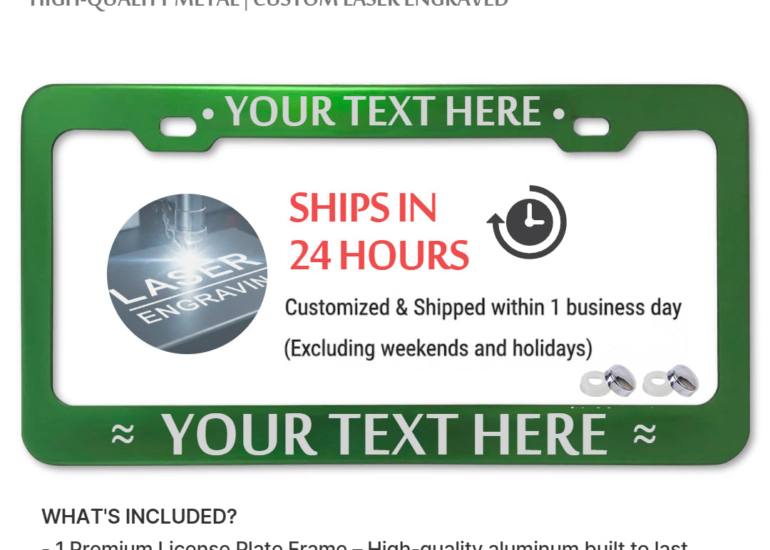 - Customize Text on the License Plate Frame in 11 Fonts!